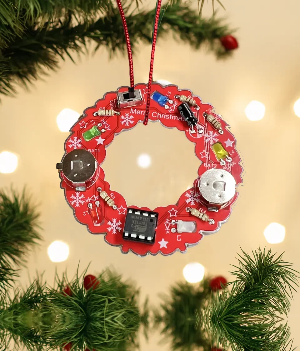 Flashing LED Wreath with 3mm LEDs. Learn to Solder Kit – Christmas Gift – PCB Wreath. Electronic DIY Circuit Kit.